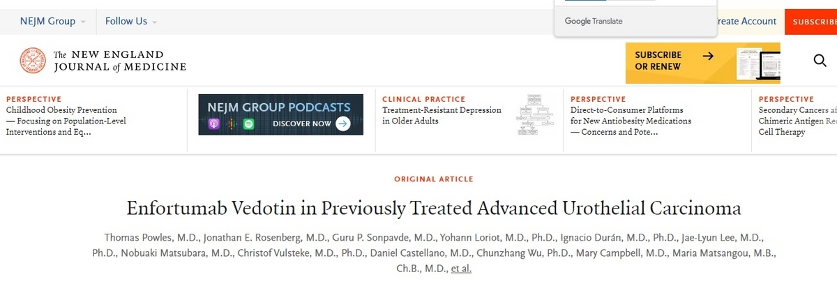 - 題名:Enfortumab Vedotin in Previously Treated Advanced Urothelial Carcinoma